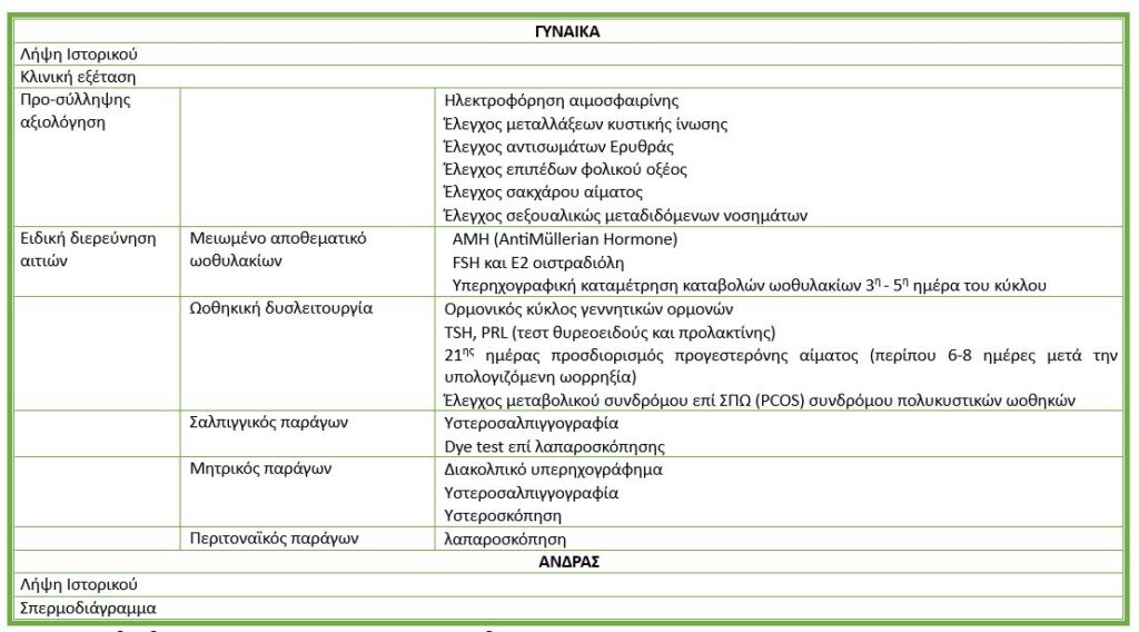 Κάθε γυναίκα μικρότερη των 35 ετών με 12 μήνες άκαρπης προσπάθειας, ή μεγαλύτερη των 35 ετών με 6 μήνες χωρίς αποτέλεσμα και όποια γυναίκα είναι μεγαλύτερη των 40 ετών δικαιούται να εκτιμηθεί για τυχόν υπογονιμότητα, αυτή και ο σύντροφός της.